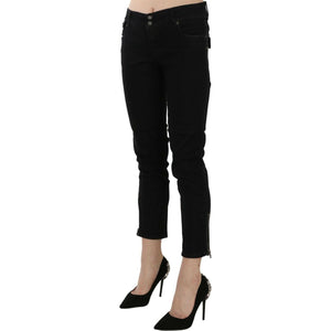 John Galliano Black Mid Waist Cropped Cut Hem Denim Casual Pants