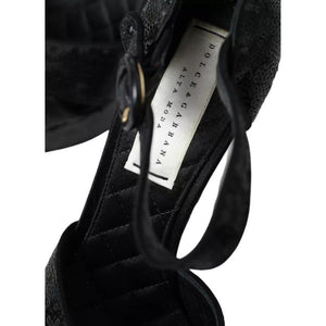 Dolce & Gabbana Black Sequin Ankle Strap Heels Sandals Shoes