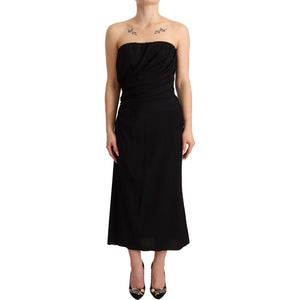 Dolce & Gabbana Black Silk Stretch Strapless Sheath Midi Dress