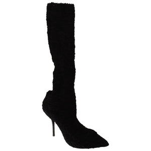Dolce & Gabbana Black Stretch Socks Knee High Booties Shoes