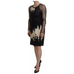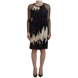 Dsquared² Black Tie Dye Mesh Long Sleeves Cotton Shift Dress