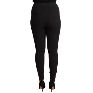Dolce & Gabbana Black Virgin Wool Stretch Waist Tights Pants