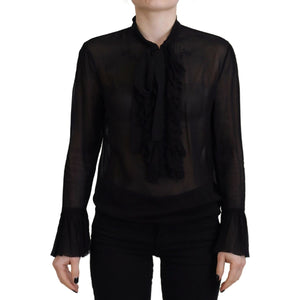 Dsquared² Black Viscose Long Sleeves See Through Blouse Top