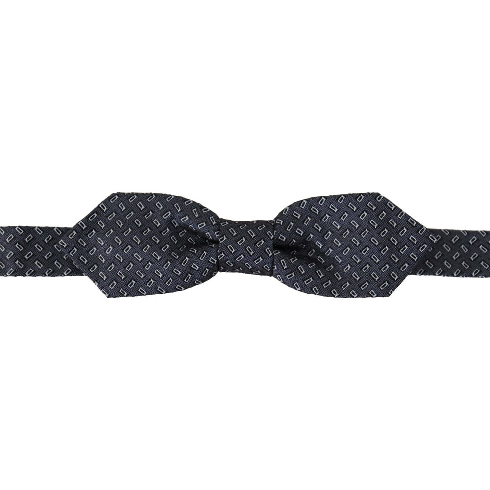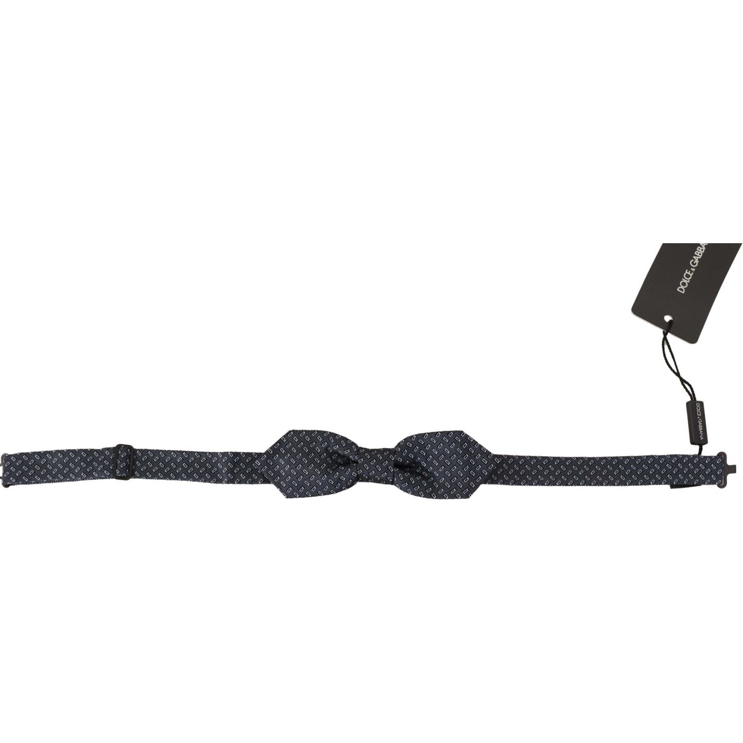 Dolce & Gabbana Blue Gray Polka Dot 100% Silk Neck Papillon Tie