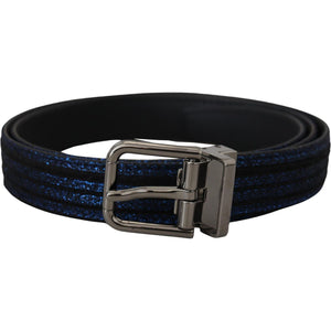 Dolce & Gabbana Blue Jacquard Stripe Silver Buckle Belt