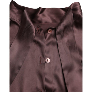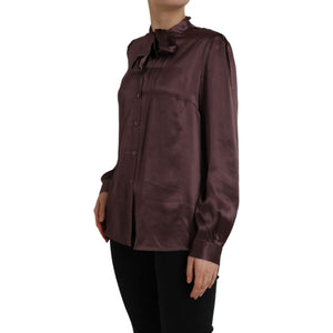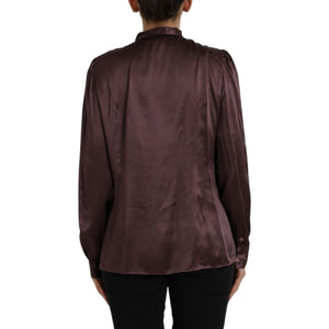 Dolce & Gabbana Brown Ascot Collar Long Sleeve Top Blouse