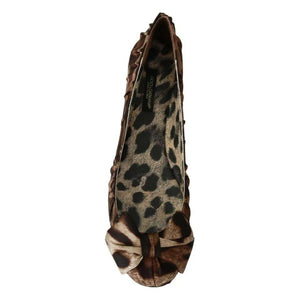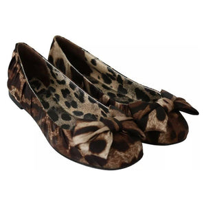 Dolce & Gabbana Brown Leopard Silk Ballerina Flats Shoes
