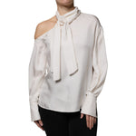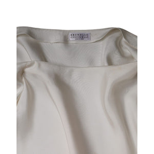 Brunello Cucinelli Beige Silk Ascot Collared Long Sleeves Top