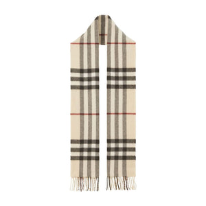 beige multicolour cashmere knitted construction Vintage Check pattern wraparound style frayed hem Giant Check cashmere scarf