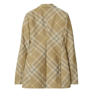 light olive green wool plaid check pattern tailored cut peak lapels front button fastening long sleeves straight hem Wool single-breasted blazer jacket Size and Fit - This piece fits true to size. We recommend you get your regular size. Model is 1,75m / 5ft 8in wearing size 8 (UK)