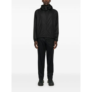 black ripstop texture padded design classic hood long sleeves elasticated cuffs two side zip-fastening pockets two side slit pockets logo print to the side high-low hem front two-way zip fastening Hooded padded jacket Size and Fit - This piece fits true to size. We recommend you get your regular size. Model is 1,84m / 6ft 1in wearing size M
