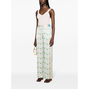 blue/multicolour silk satin finish all-over ping pong print high-waisted concealed side zip fastening two diagonal pockets to the sides straight leg Printed silk straight leg trousers Size and Fit - This piece fits true to size. We recommend you get your regular size. Model is 1,75m / 5ft 8in wearing size 36 (FR)