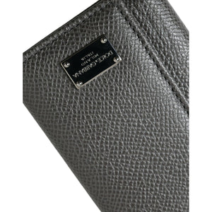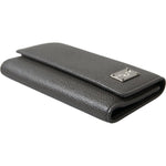 Dolce & Gabbana Gray Leather Silver Metal Logo Plaque Trifold Keyring