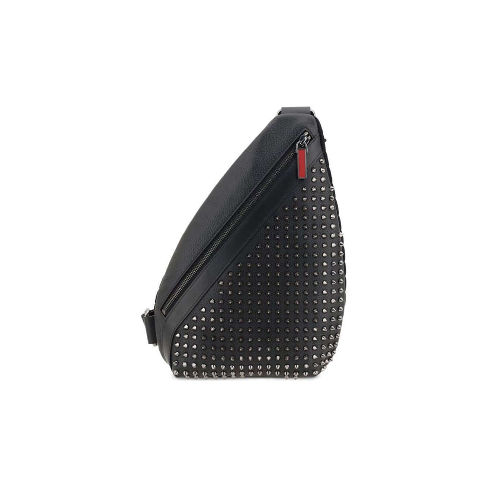 black front zip fastening adjustable shoulder strap spike stud detailing Funky Slingback leather backpack