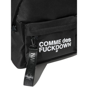 Comme des Fuckdown polyester backpack with front logo print, zip closure and external pocket, adjustable shoulder straps