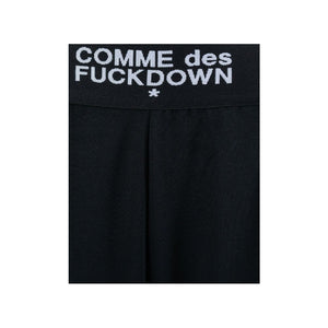 Make a statement in urban elegance with Comme Des Fuckdown’s sleek palazzo trousers. Designed with a bold stretch waist showcasing the emblematic logo, these trousers encapsulate comfort-chic. Float through your day with timeless ease and a touch of rebel flair.