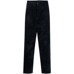 mid-rise twill trousers from COMME DES GARÇONS SHIRT featuring navy blue, cotton, twill weave, mid-rise, belt loops, front button and zip fastening, two side slit pockets, two rear patch pockets and straight leg. Cotton trousers Size and Fit - This piece fits true to size. We recommend you get your regular size. Model is 1,84m / 6ft 1in wearing size M