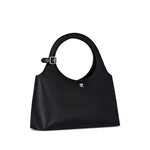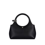 black concealed top-zip fastening circular top handles adjustable detachable shoulder strap Holy leahter handbag Size and Fit - Width 10,24 in / 26 cm Height 11,02 in / 28 cm Depth 9,06 in / 23 cm Handle 7,87 in / 20 cm