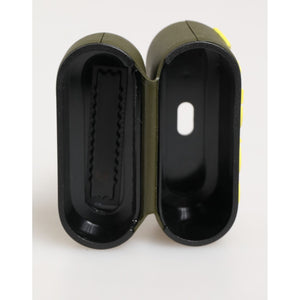 Dolce & Gabbana Army Green Rubber Logo Embossed Accessory Airpods Case featuring durable design and embossed logo in army green and yellow.