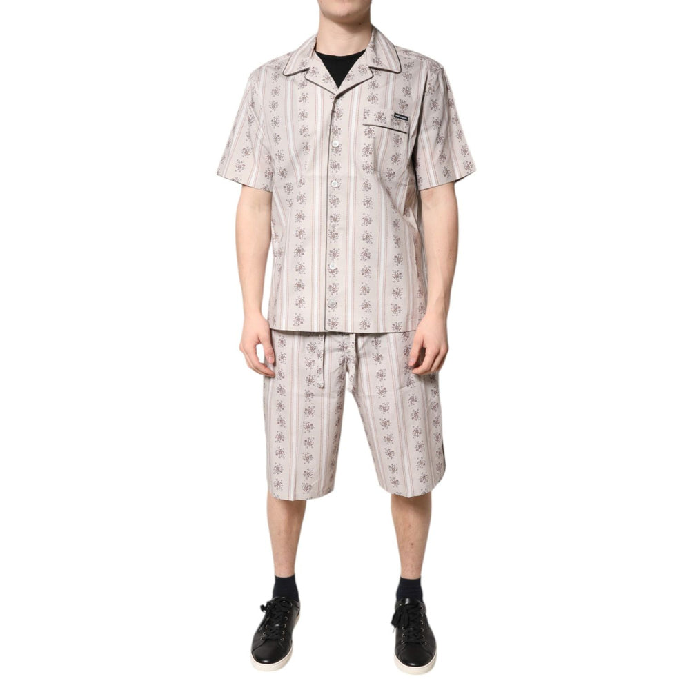 Dolce & Gabbana Beige Floral Print Cotton Men Pajama Set Sleepwear