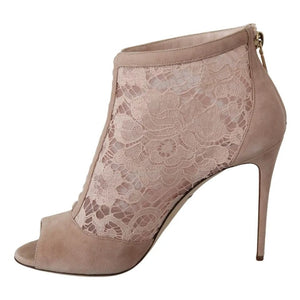 Dolce & Gabbana Beige Lace Suede Peep Toe Ankle Boots Shoes