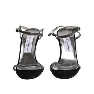 • Dolce & Gabbana Black Ankle Strap High Heels Sandals Shoes