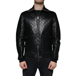 Dolce & Gabbana Black Calf Leather Quilted Full Zip Jacket