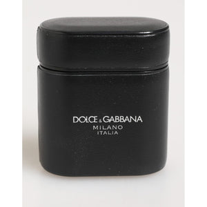 Dolce & Gabbana Black Calfskin Leather Logo Print Flip Holder Airpods Case