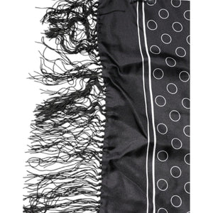 Dolce & Gabbana Black Circles Silk Fringes Shawl Wrap Scarf