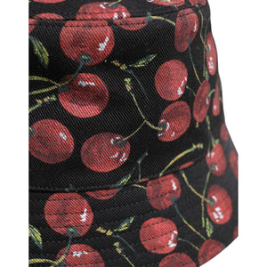Dolce & Gabbana Black Cotton Printed Wide Brim Bucket Hat