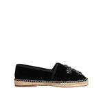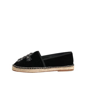 Dolce & Gabbana Black Cross Crystal Slip On Espadrille Shoes