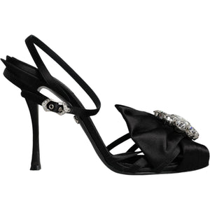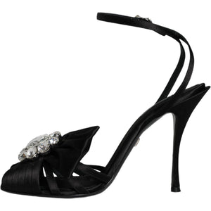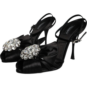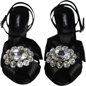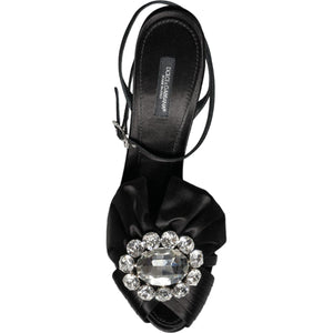 Dolce & Gabbana Black Crystal Ankle Strap Sandals Shoes