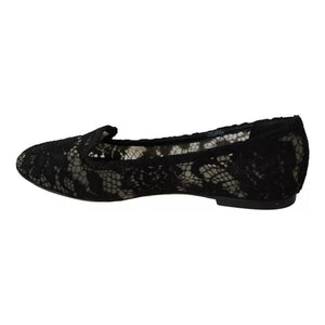 Dolce & Gabbana Black Floral Lace Loafers Flats Shoes