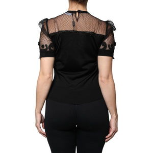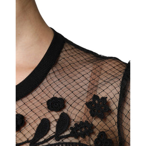 Dolce & Gabbana Black Floral Lace Short Sleeves Blouse Top