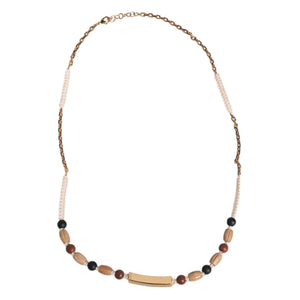 Dolce & Gabbana Black Gold Wooden Beaded Logo Pendant Necklace