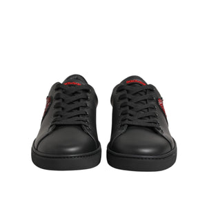 Dolce & Gabbana Black Leather Crystal Heart Low Top Sneakers Shoes