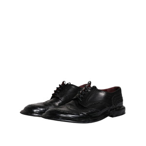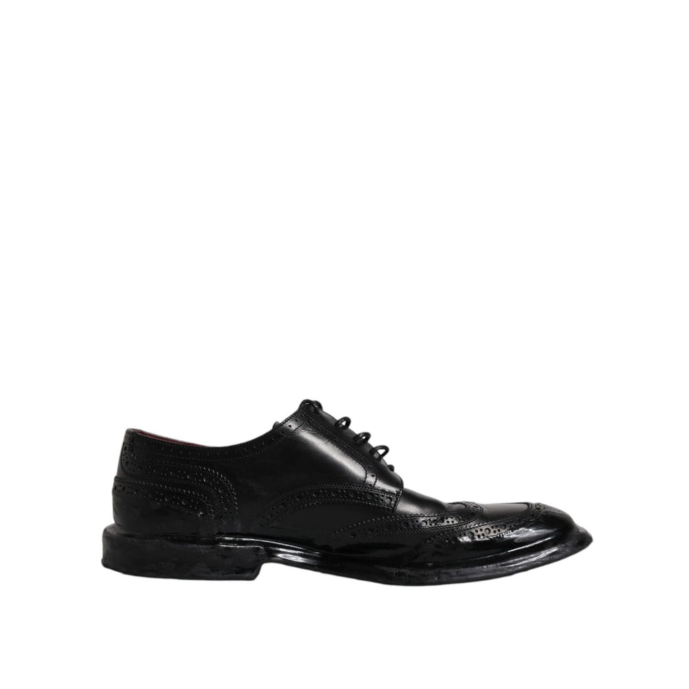 Dolce & Gabbana Black Leather Derby Wingtip Formal Shoes