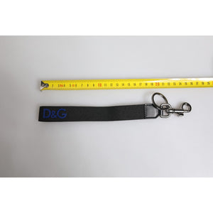 Dolce & Gabbana Black Logo Nylon Silver Brass Men Holder Keychain Keyring