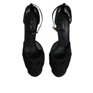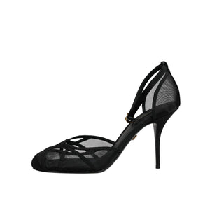 Dolce & Gabbana Black Mesh Ankle Strap Heels Pumps Shoes