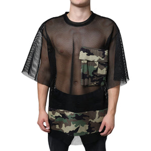 Dolce & Gabbana Black Mesh Camouflage Short Sleeves T-shirt