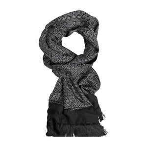 Dolce & Gabbana Black Patterned Fringes Men Foulard Scarf