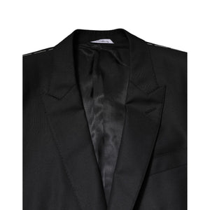 Gorgeous brand new, 100% Authentic Dolce & Gabbana black, 2 piece suit is crafted from a virgin wool and features a peak lapel, long sleeves, a chest pocket, side flap pockets and button cuffs.