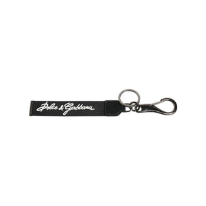 Dolce & Gabbana Black White DG Logo Silver Men Keychain Polyester Keyring