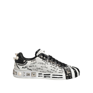 Dolce & Gabbana Black White Studded Low Top Sneakers Shoes