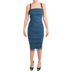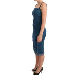 Dolce & Gabbana Blue Mesh Trim Ruched Tulle Sheath Dress