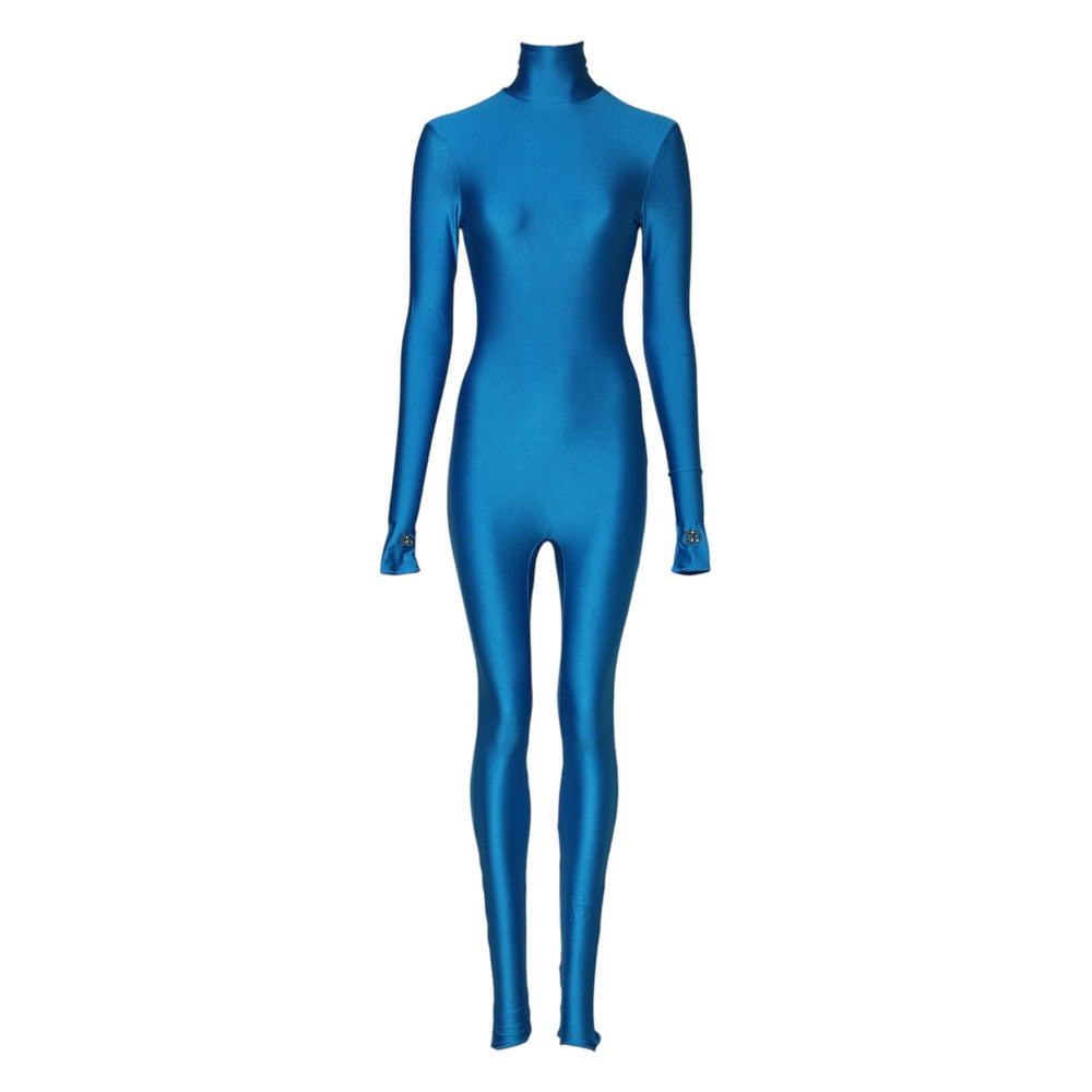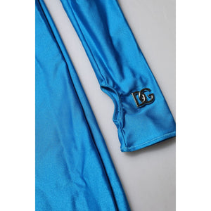 Dolce & Gabbana Blue Nylon Turtleneck Bodycon Jumpsuit Dress