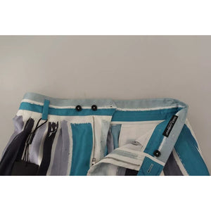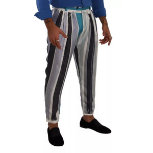 Dolce & Gabbana Blue Striped Silk Tapered Pants