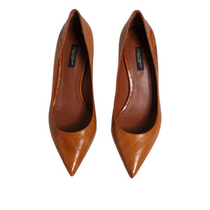 Dolce & Gabbana Brown Leather Kitten Heels Pumps Shoes