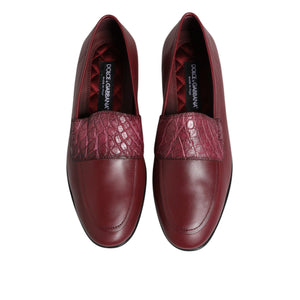 Dolce & Gabbana Burgundy Leather Formal Slip On Shoes