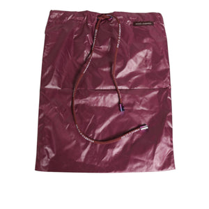 Dolce & Gabbana Burgundy Polyester Logo Embossed Crest Swimwear glossy finish with iconic DG embroidered crest on drawstring bag.